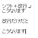 1行ずらしたい場合は キーボードの改行(Enter)を押します その際には←のように2種類の方法があります