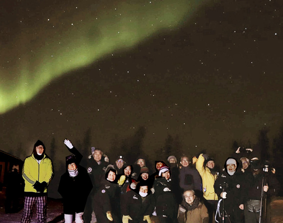 ●カナダオーロラツアー大成功!! イエローナイフへのツアーは19名の参加、レベル5の オーローラを見ることが出来て大成功でした。 |