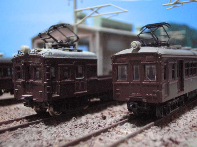 | クモハ12 左 箱買いで出てきた仙石色 右 7個買って、何とか出てきたぶどう色 |