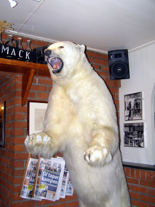 トロムソには、マックビールという世界最北のビール工場があります。その工場のバーには北極グマの剥製が置いてあります。