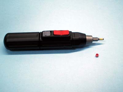 | 適当なビットを付けます。 写真は、六角ねじ用です。 パーツと太さをあわせる為に マスキングテープを巻きます。 |