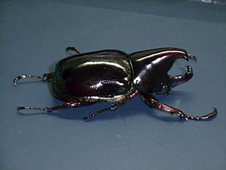 幼虫時代40グラムほどだったのだが、胸部の角がやや短い。 最低でも45グラムは行かないと立派にならないのだろうか? しかし、さすが好戦的なカブトムシだけあって、なかなかごつくてかっこいいではないか。