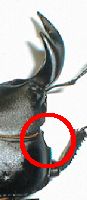 (但し、台湾国内では、採集・飼育・輸出禁止と聞きますのでご注意ください。) そのタイワンオオクワガタの前胸背板側縁形状 (右図 ○印部分)は、 不思議なことに様々な形をしているのは、皆さんご存知だと思いますが、その前胸背板側縁形状だけを色々ご覧になったことは有りますでしょうか?私は本当に色々な形が有るのか?産地で違いが有るのか?台湾の北と南での違いは有るのか?GタイプCタイプ出現比率は?単なる個体差(血統)なのか? を解明するために、各産地の収集をし画像比較してみました。 とりあえず集めてみただけで個体数も少ないので、これで何を言えるのかはまだ解りませんが(^_^;)「こんなもんか・・・」と、眺めて見て下さい。 今回は「Gタイプ」「Cタイプ」「中間タイプ」と、分かりやすく3つに分けました。
