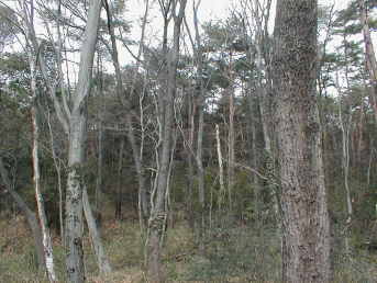 ↑の画像を見て頂くと雑木と松が程よく混在しているのが解ると思う。この混在具合が大切で、松が多過ぎても雑木が多過ぎてもいけない。平たく言えば松林から雑木林に変わる境目と言える。つまり発生材となる赤松の倒木があり、尚且つ後食のためのクヌギが同じテーブルに乗っている様な環境をネブトは好むようで、どうやらなかなかの不精者の様である。