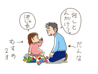 そこで、むすめに名古屋弁で話しかけて仲間にしようとしている