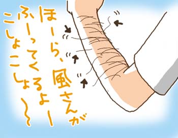 | しかも先生の腕の毛が5pぐらいあって、 それが空調でふよふよ目の間でなびいているので 気になって仕方ありません。 でもきっと先生は気づいてないんだろうなあ・・・。 |