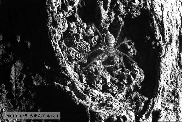 なんと!!、とうとう「美」のコーナーに蜘蛛が登場してしまいましたですねぇー。 蜘蛛君は、見かけが気持ち悪いから嫌われてしまうんですけど、 ほんとはいい奴なんですよ。害虫なんか退治してくれるしね。 特にこの「イエタナグモ」は、通常家の中を走り回ってゴキブリなんかを 退治してくれるんですよ。蜘蛛の巣も作らないし、すっごくいい奴なんだ。 でも、結構大きくなるから、家の中でこんなの見つけたらビックリして、 飛び上がっちゃうですよね。 蜘蛛って、じっくり見てみると可愛いし、実に美しいんですよ。 このページに登録した、「イエタナグモ1」は、可愛らしい子蜘蛛君ですが、 次のページには、すっかり成長した大人の蜘蛛君が登場します。 蜘蛛がどうしても苦手な方は、次のページに進まない方がよいでしょう。