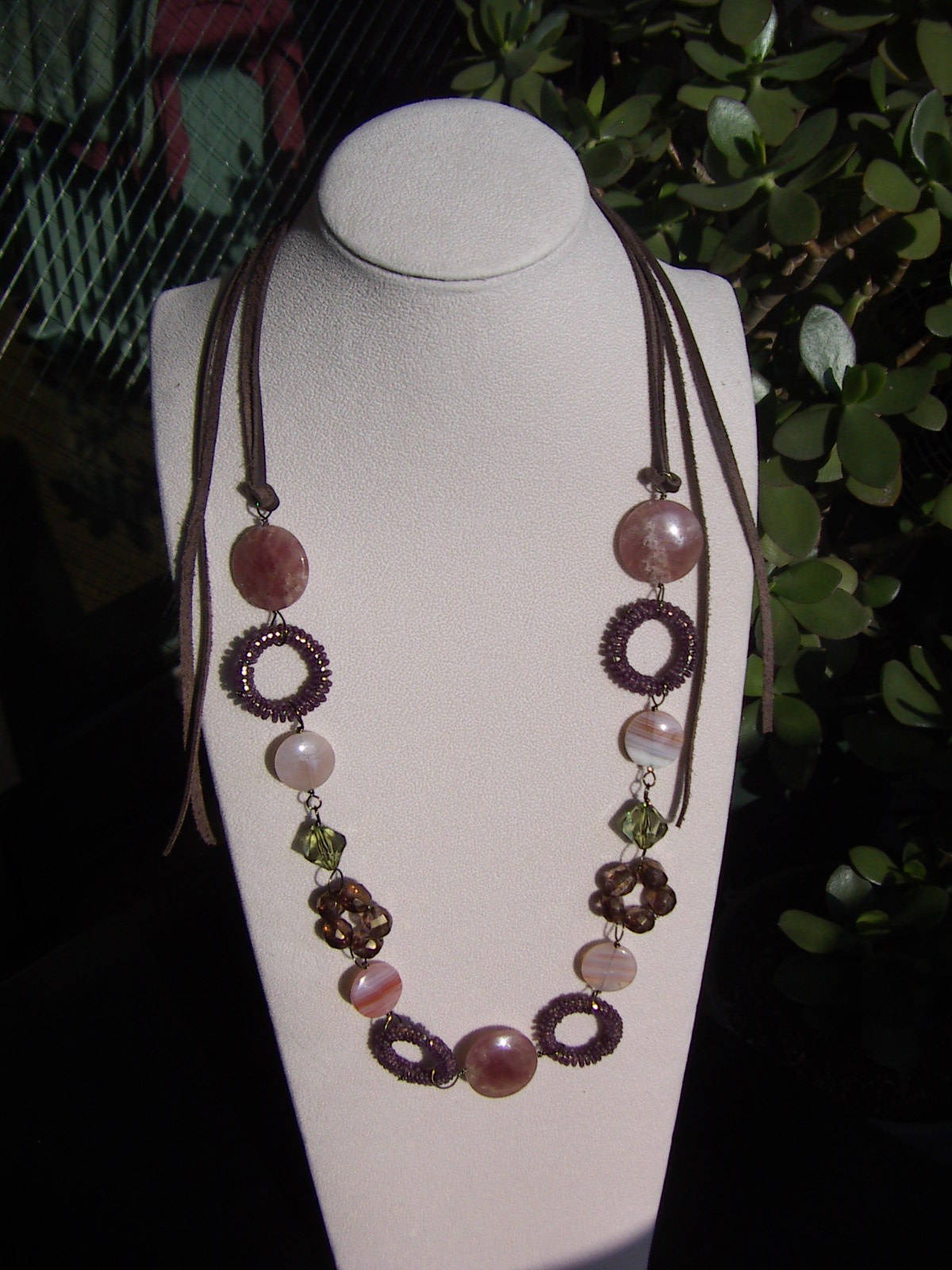 | 1月講習A ビーディングのネックレス アゲート、ストロベリークォーツ チェコビーズ他使用。 講習料 2000円 材料費 1800円 |