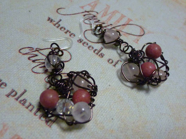 | 12月講習A ハートのネックレス&ピアス (イヤリング) またはバッグチャーム ローズクォーツ ロードナイト カットガラス アクリルビーズ使用 講習料 2000円 材料費 2000円 |