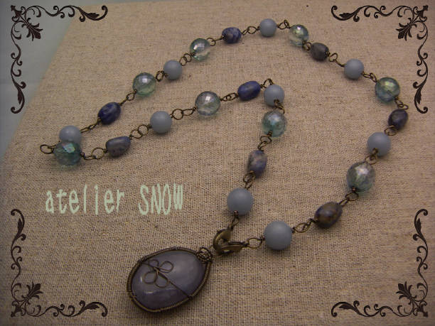 | 2月講習A アイオライトの コイリングネックレス アイオライト、エンジェルライト ソーダライト、チェコ使用。 講習料 2000円 材料費 1800円 |