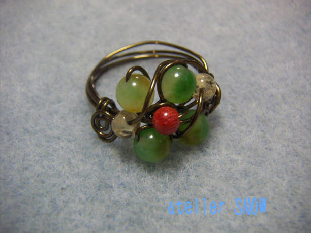 | 5月講習@ ペアでグリーン マクラメビーズ アクリルビーズ チェコビーズ スポンジサンゴ シトリン他 講習料2000円 材料費1700円 |