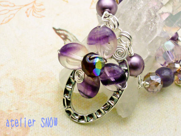 | 6月講習@ フローライトのお花のネックレス フローライト アメジスト チェコガラスパール カットガラス チェコ アクリルビーズ使用 講習料 2000円 材料費 2000円 |