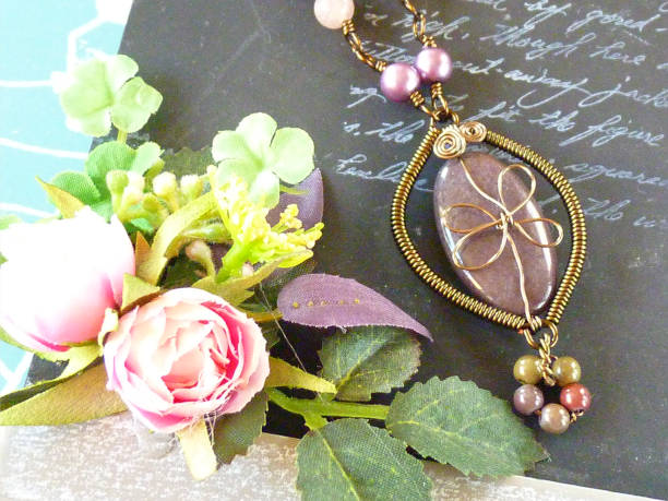 | 9月講習A パープルアベンチュリンの コイリングネックレス パープルアベンチュリン ストロベリークォーツ カットガラス チェコラウンドビーズ他 講習料 2000円 材料費 1500円 |