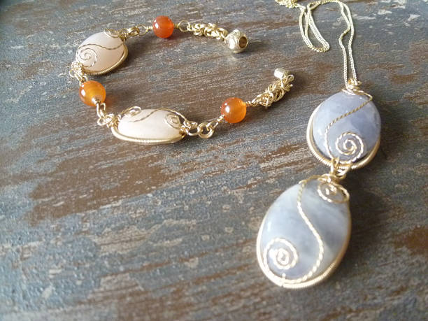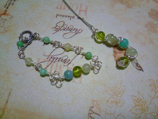 | 7月講習A コイリングのブレスレットと ペンダントトップのセット ピンクアベンチュリン 赤めのう使用 講習料 2000円 材料費 1800円 アイオライトバージョンとの どちらかをお選びいただけます。 コイリング、渦、めがね留 ビザンチンチェーン |