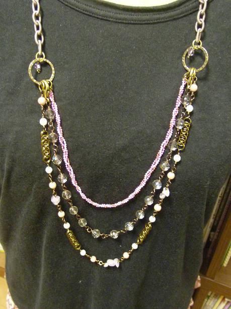 | 4月講習@ ビザンチンの3wayネックレス ロードナイト、ラベンダーアメシスト ローズクォーツ。エアパール カットガラス使用 講習料 2000円 材料費 2300円 |