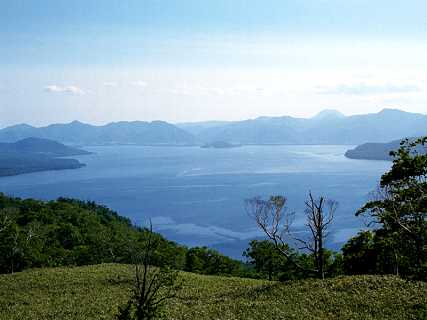 R391から分岐する道道102は外輪山を登り北東から湖面を望む。その藻琴山展望駐車場からの屈斜路湖。