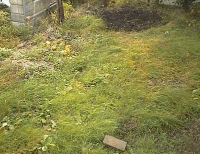これが現場。 (画像左上の黄色っぽい丸いものは、カリンの実。たっぷり虫食いで処分に困って転がしてあった) |
