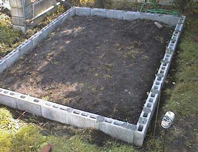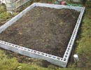 完璧な基礎工事。 (ブロックを並べる・・・一応重量ブロックを選定。) |