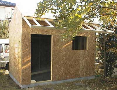 サイディング?は知人から余材を分けてもらえた・・・ラッキー。左手の窓ももらっちゃいました。 | ||||