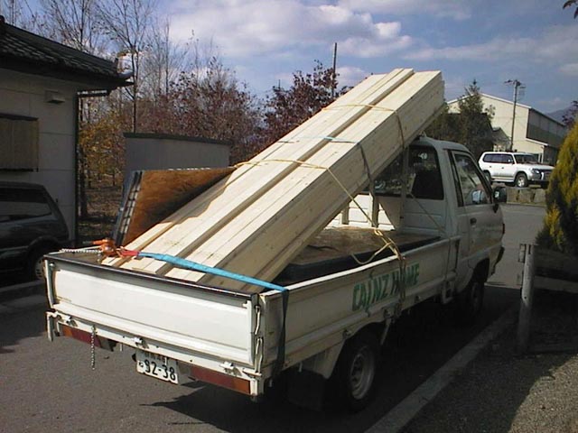 材料購入。 トラックをチャーター。 基本的にすべてのものがDIYセンターで手に入ってしまう世の中。 良いんだか悪いんだか・・・ |