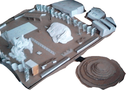 北本公園を模型を作って考えています。回りの建物も作っているのですが全部風で倒れています。白いものは念願の土の山ですが紆余曲折を経ることになります。下の丸いのは土の山の原型です。
