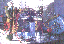 テケテケテーとラッパが鳴ると水が吹き上がりパカパカと浮き玉が上がり水車が回り