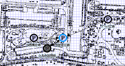 広場の東側からはじまって、西の芝生広場とピロティの下を通ってレンガ舗装の展望広場へでれます。