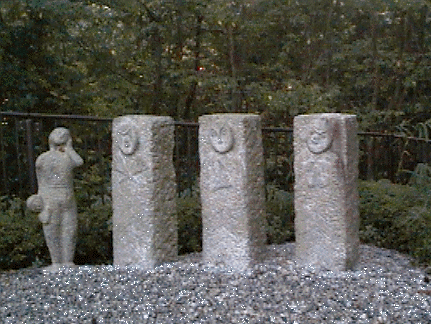 (Threemen and Family ) 林が少し明るくなったところです。もともとはふくろうが石の一つに乗っていましたがいなくなっているようですね。(うぐいす池公園)