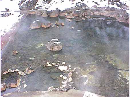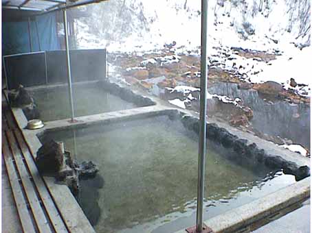 源泉(上記の川の中の温泉)から近く(約200m)歩いていける。