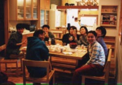 さて、濱ゼミとはなんぞや? 指導熱心な教授と真面目な生徒達の、 アカデミックなゼミ。 ・・・であることには間違いないんだが、なんかぁ。 左の写真は、濱先生宅でのゼミ風景。 先生の手料理を味わいながらの酒は上手いなぁ。 げへへ。 ・・・そうか、酒か。 酒がこの他ゼミとのテンションの違いを 生み出しているんだ! ちっきしょー。てやんでぃ。 ゼミで酔いつぶれた人は数知れず。 おいら自身、飲酒量が増えました。 恐るべしっ!甘い罠!