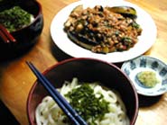 今年はそばじゃなくて冷やしうどんの消費が多いかも。まーぼ茄子をおかずに。