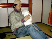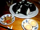 おむすびつくりました。形を整える最後の仕上げ?を相方にやってもらった。