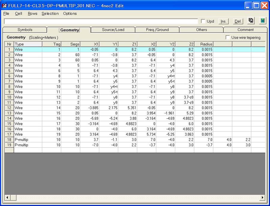 Fig.3 4NEC2の座標入力ページ
