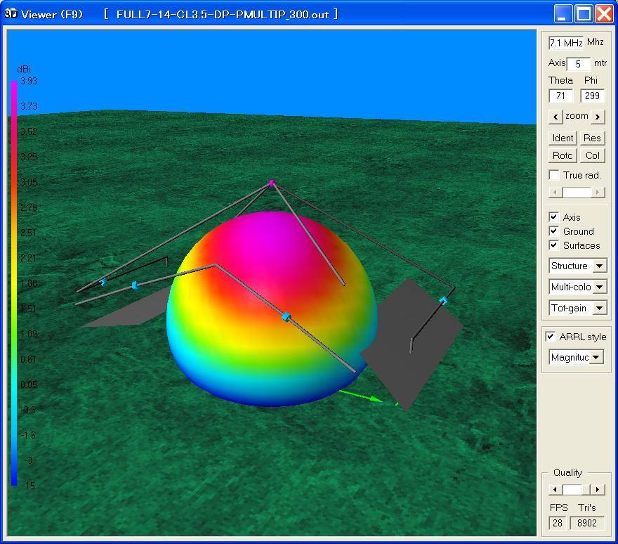 Fig.9 4NEC2の計算結果(7.1MHz 3次元Gain)