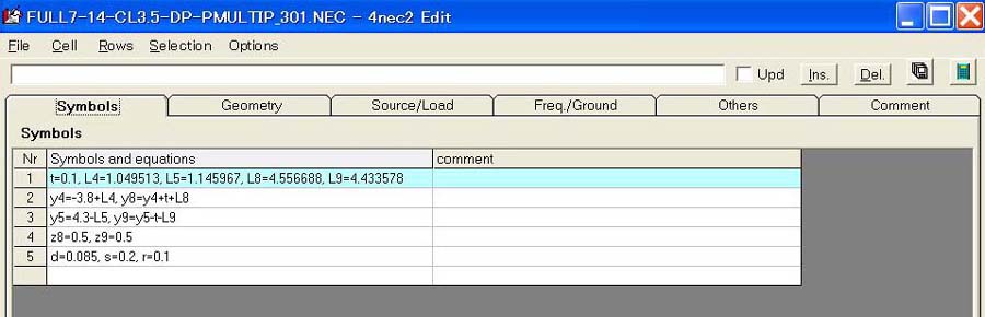 Fig.2 4NEC2の変数定義ページ
