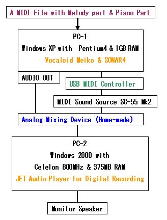 2台のパソコンを用いるが、1台はVocaloid Meiko 及び、SONAR4を実行できるようにする。(私のSONAR4はRoland