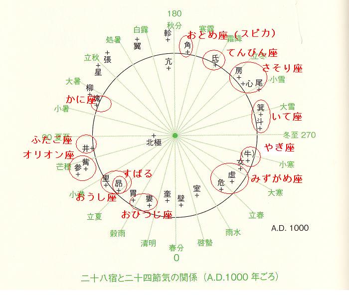 大ぐまのあしを きたに 五つのばした ところ。 小熊のひたいの うへは そらのめぐりの めあて。 |