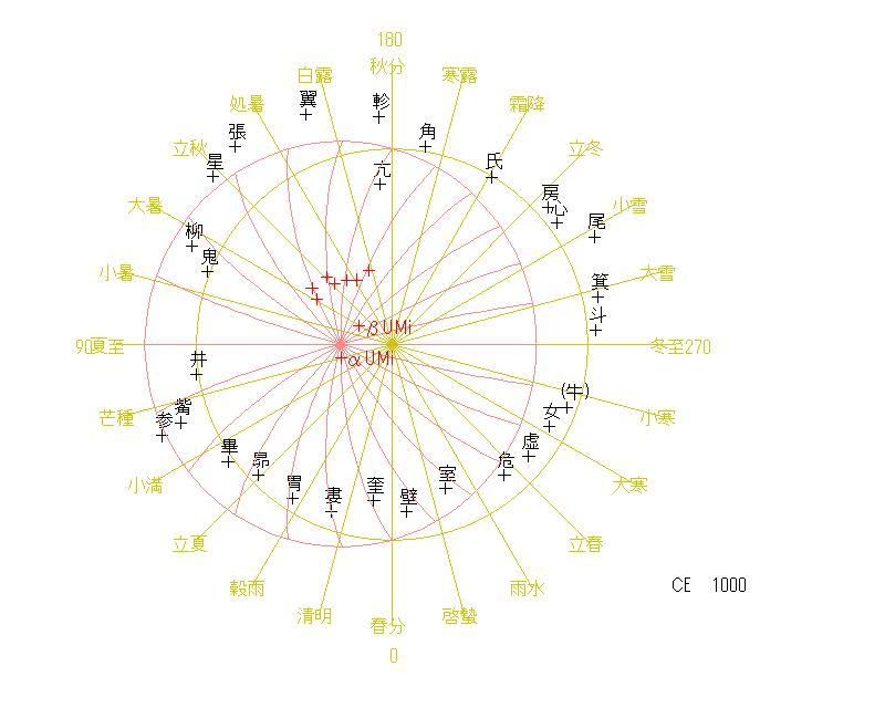 その後歳差運動により、AD1000年頃には春分点は奎宿〜壁宿へ移動した。