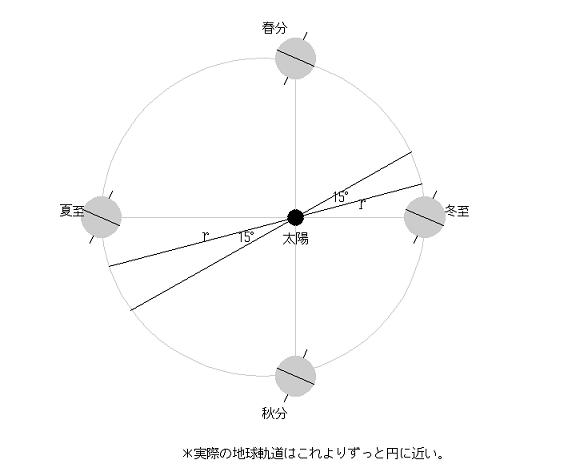 これらは1つおきに中気と節気に分かれる。月名は中気によって決められる。たとえば冬至は十一月中気なのでこれを含む月は十一月、大寒は十二月中気なのでこれを含む月は十二月、以下同様である。 | 朔望月の長さは平均29.53日ほどであるが中気間隔は30日強なので、時に中気を含まない月が現れる。これが閏月である。 なお、「啓蟄」は日本以外では「驚蟄」である。 二十四気の決め方には「恒気法」と「定気法」がある。 恒気法(常気法、平気法とも言う)は、1年を単純に24等分して決める。この場合の「1年」とは冬至から冬至までとするのが常である。たとえば宣明暦、これは我が国では貞享暦に改暦されるまで823年に渡って使われ続けたものだが、そこでは、 したがって、 また、2至2分(冬至、春分、夏至、秋分)の間隔はすべて である。しかし実際には至分の間隔は同じではない。これは『ケプラーの法則』によるものである。 まず、至分の天文学的意味を明確にしておく。すなわち、 ・冬至とは太陽が南回帰線に到達した時。 ・春分とは太陽が赤道を南から北へ横切る時。 ・夏至とは太陽が北回帰線に到達した時。 ・秋分とは太陽が赤道を北から南へ横切る時。 |