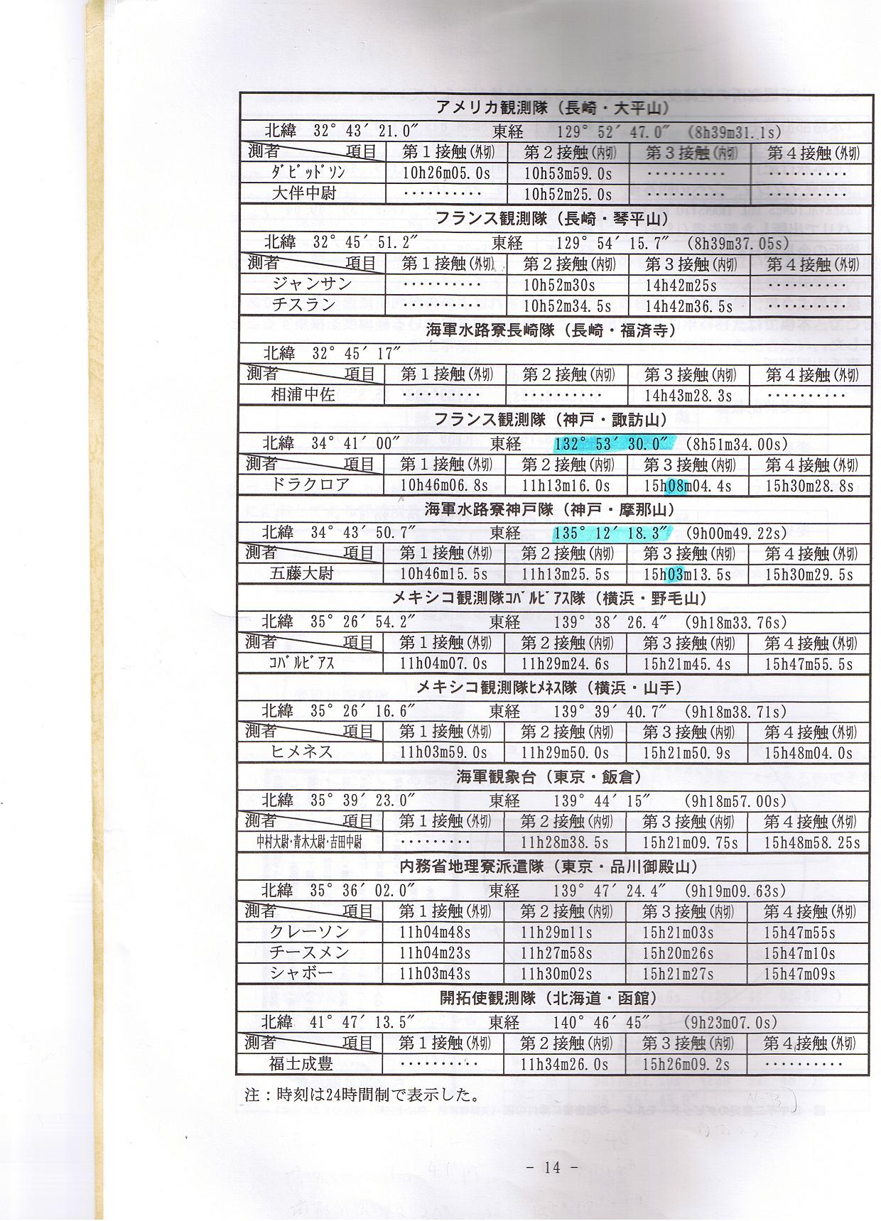 | 第3接触 | 15h03m04.4s | 15h03m13.5s | -9.1 | 原口pp14の諏訪山金星台 15h08m04.4s は明らかに誤り |