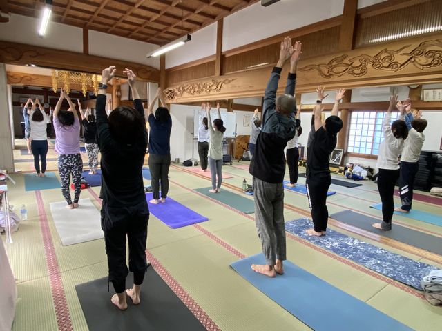 神宮寺では、真夏の期間に早朝のヨガ教室を開催しています。
