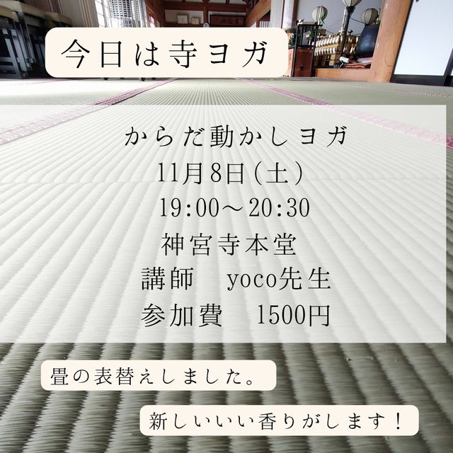 5月は第1・第4土曜日に寺ヨガを開催します。