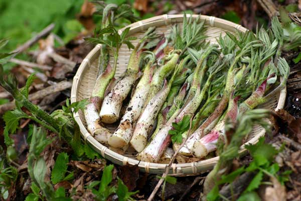 | 渓流周辺の湿った斜面に生える。独特の香りと味があり、シドケ、アイコと並び雪国を代表する山菜の一つ。手で軽く折れる硬さのところから採取する。料理は、おひたし、天ぷら、ごま和え、酢味噌和え、油炒め、汁の実に。