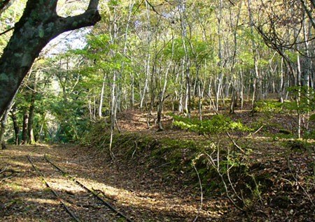 南の方へ尾根を辿る。良く掘れた古い道である。「ばん」取り跡や「水飲み場」を過ぎて大段谷山からの