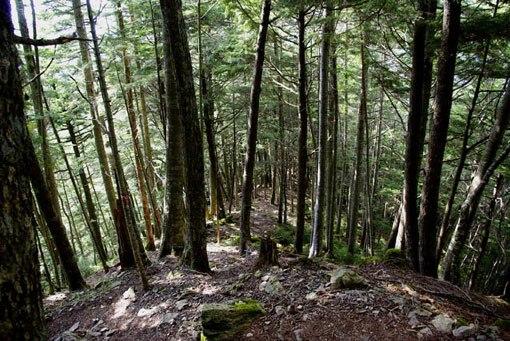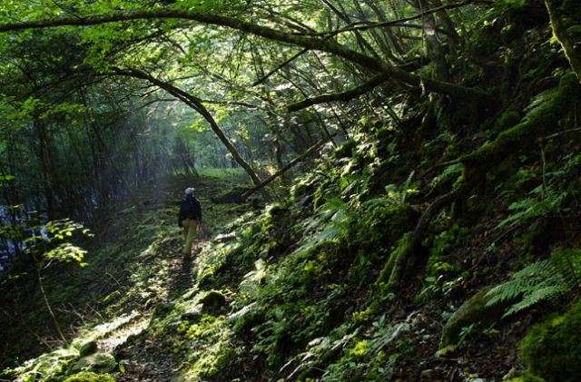 忘れられず、夏山は沢の水で顔を洗うのが楽しみの一つだ。夕日の斜光が射す苔むした森もまた良い感じである。