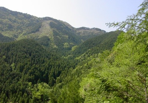 やがて木の間から、先週やまあそさんが登った伐採尾根の頭(Ca960m)が見える。まだ遙かな高みだ。
