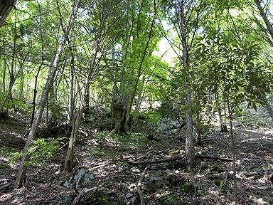 段差が出てきたのでいよいよ南尾根に取り付くことにする。緑が覆い被さるようにせまり、中に