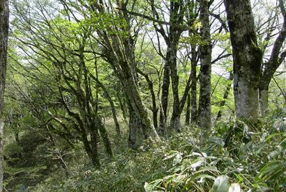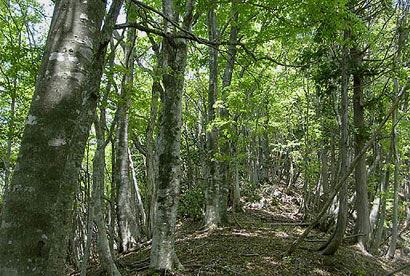 見える。足下の斜面には若いアセビがはびこっていた。約960mの肩まで登るとブナ林も立派になり、
