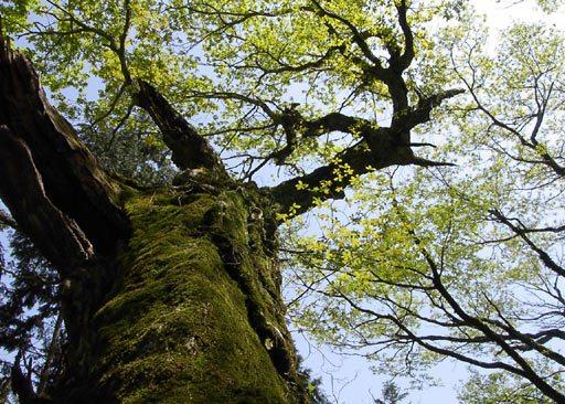 ハシゴの掛かったブナの木発見。樹上の楽園を独り占めにした人の遺物か。