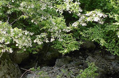 ぶらりぶらりと下りていく。「藤無の水」で小休止。白いウツギがたくさん咲く駐車地はすぐだった。